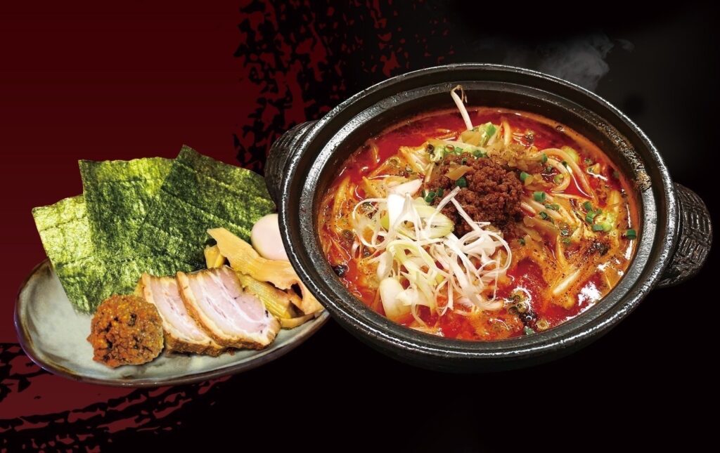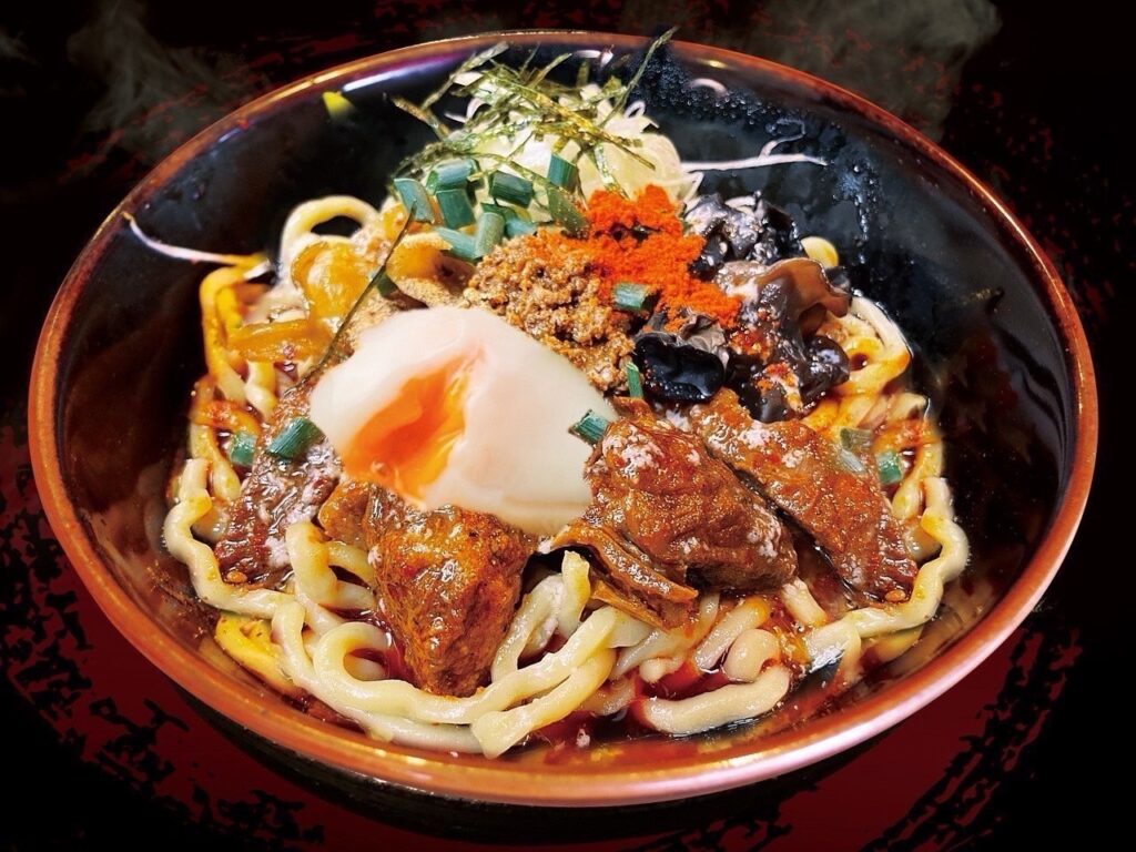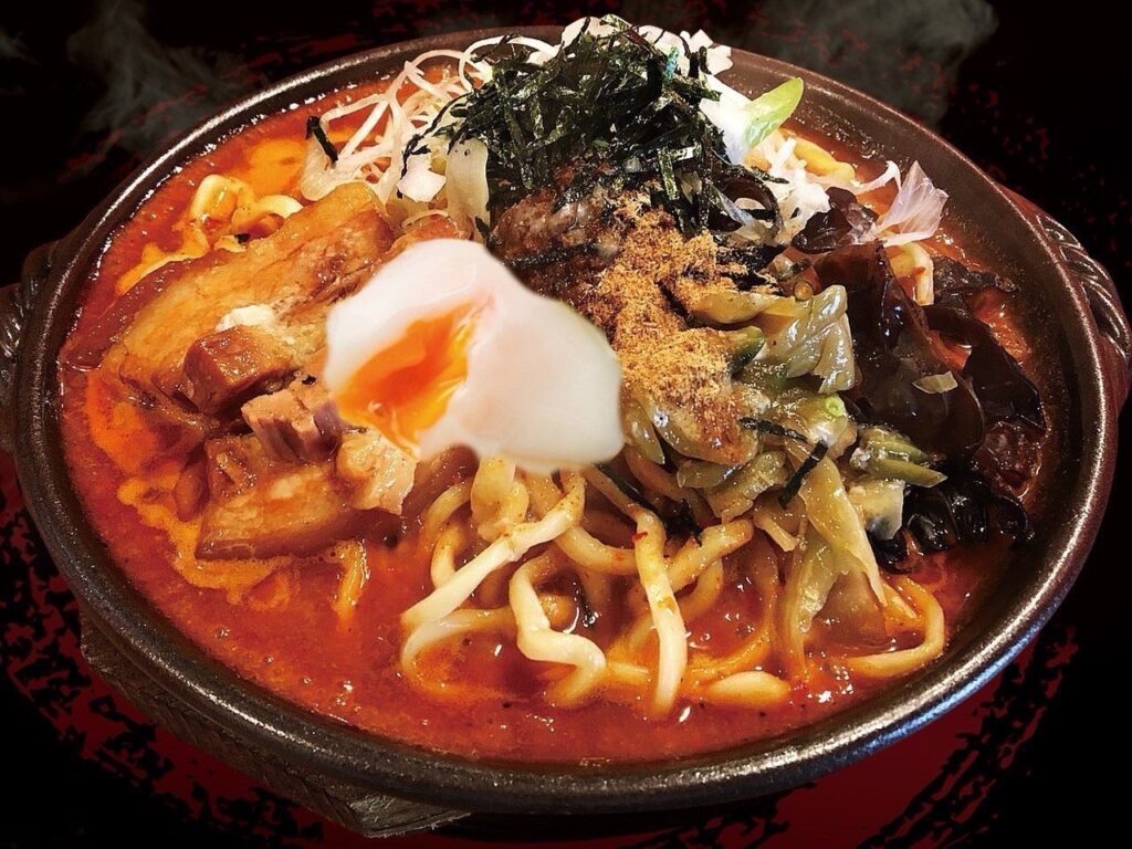 看板メニューは「肉つけ麺」。牛骨と鶏ガラ、野菜を12時間煮込んで作るスープは、辛さと旨味のバランスが絶妙で、土鍋で煮立った状態で提供される。他店では味わえない深みのある一杯として支持を集めている。