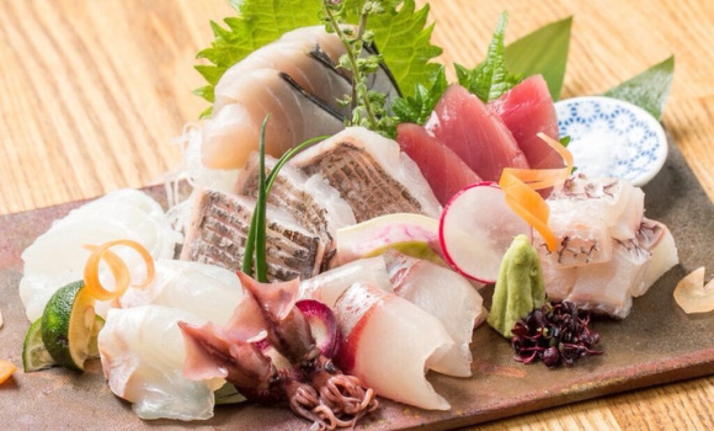 駅から徒歩3〜4分。瀬戸内直送の鮮魚と、ふっくら香ばしい健味鶏の串焼きを、日本酒とともに楽しむ一軒。決まった定番に縛られず、その日の良いものを丁寧に仕立てるから、刺身も串もいつ行っても新鮮。コース料理にも定評があり、+300円で日本酒も追加できるから、お料理もお酒も“大満足”の夜になる。