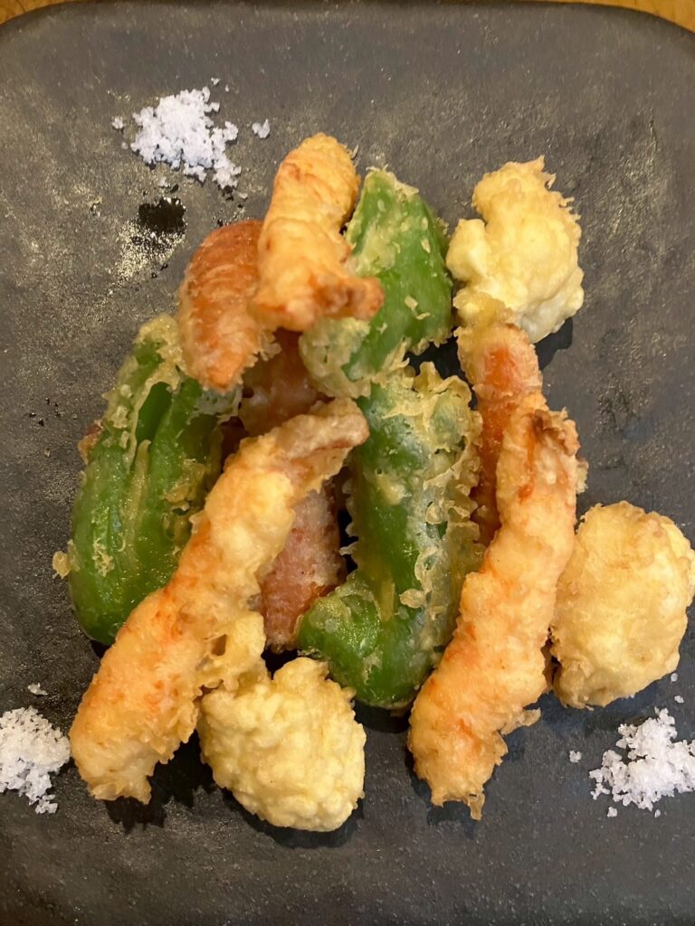 提供されるのは「おまかせコース」のみ。刺身はサーモンやハマチなど養殖魚を用いず、天然ものにこだわる。嶺岡豆腐は濃厚でなめらかな口当たり、鴨と九条ネギは自家製鰹出汁でまとめ、天ぷらには加計呂麻の塩を添えるなど、シンプルながら素材の良さを際立たせる工夫が随所に見られる。さらに、各料理に合わせてオーナー自らが選ぶ酒が提供され、食と酒の相乗効果を体験できるのも魅力だ。