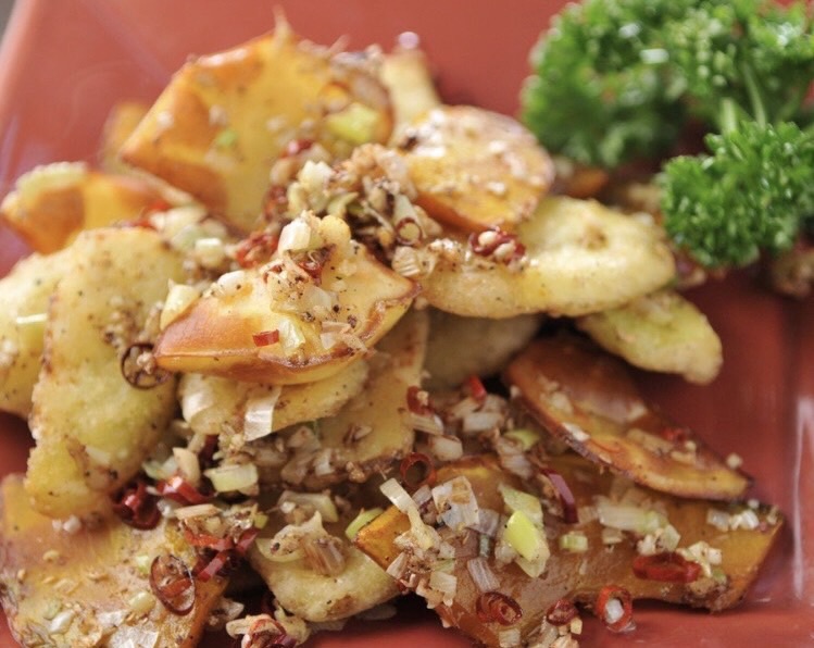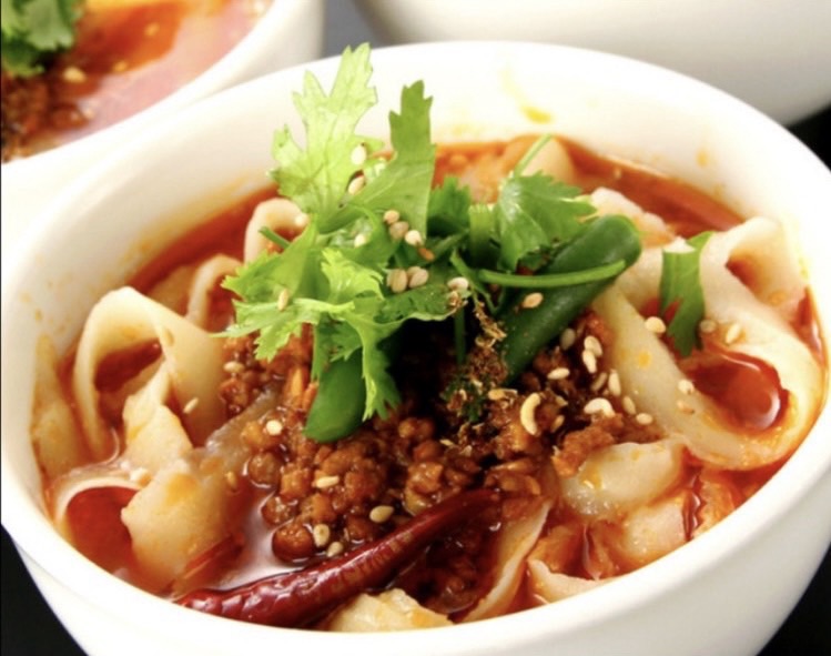 お店を訪れたほぼ全員が注文するという看板メニューが「茄子の山椒香り揚げ」。また「刀削麺」は熟練の職人が手にした特性ナイフ、小麦の生地をシャッシャッと削りながら、熱々のスープに直接投入する姿はまさに職人技。もっちりとした独特の食感と、コクのあるスープが絶妙に絡み合い、食べ進めるほどにやみつきになります。花山椒は中国から直接仕入れており、香り高くしびれる辛さがクセになる一品。ピリッと刺激的な味わいの中に、どこか奥深い旨味が潜んでいます。その他にも、前菜や炒め物、点心など、手作りならではの味わいが楽しめるメニューが揃っています。