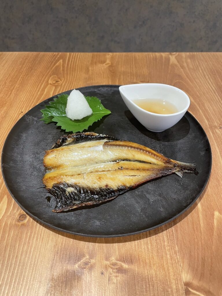 店内はカウンター席とテーブル席を合わせて約18席。木目を基調とした温かみのある空間に、大きな窓から自然光が差し込み、落ち着いた雰囲気を演出している。全席に電源と無料Wi-Fiを備え、仕事帰りの一杯や長めの食事にも使いやすい仕様だ。窓際の席からは志木の街並みを望むことができ、デートにも好適。さらに、店内には小さな物販コーナーが設けられており、料理に使用される干物や塩鰹、調味料などをお土産感覚で購入できるのも特徴だ。