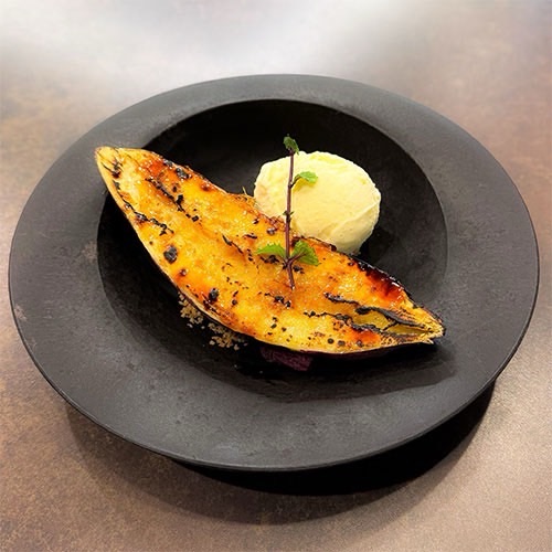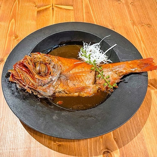最大の特徴は、すべての料理に使われる「石窯」。薪の炎でじっくり焼き上げることで、素材の旨みを閉じ込める。看板メニューの「特上大トロアジの開き」は、西伊豆から直送された極上干物をピザ窯で焼き上げ、外は香ばしく中はふっくらと仕上げる逸品だ。「石窯焼きハンバーグ」は、下に甘みのあるたまねぎを敷き、その上から鰹節をたっぷり削って提供。肉のジューシーさと鰹の香りが合わさる唯一無二の味わいとなっている。さらに「ジビエの盛り合わせ」では、西伊豆産の鹿と猪を使用。ワインとの相性も抜群で、店内には200本以上のボトルワインと12種類のグラスワインが常備されている。どの料理も素材の持ち味を最大限に引き出す調理法で提供され、“西伊豆の自然をそのまま皿にのせる”という店の哲学が感じられる。