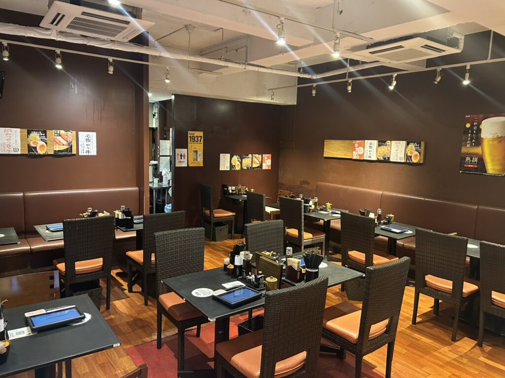 店内は木目調のテーブルと椅子が並び、落ち着きある空間。清潔感があり、ジャズが流れる雰囲気が一層食欲をそそります。全32席で、ひとりでもグループでもくつろげるレイアウト。女性一人でも入りやすく、老若男女問わず利用されています。