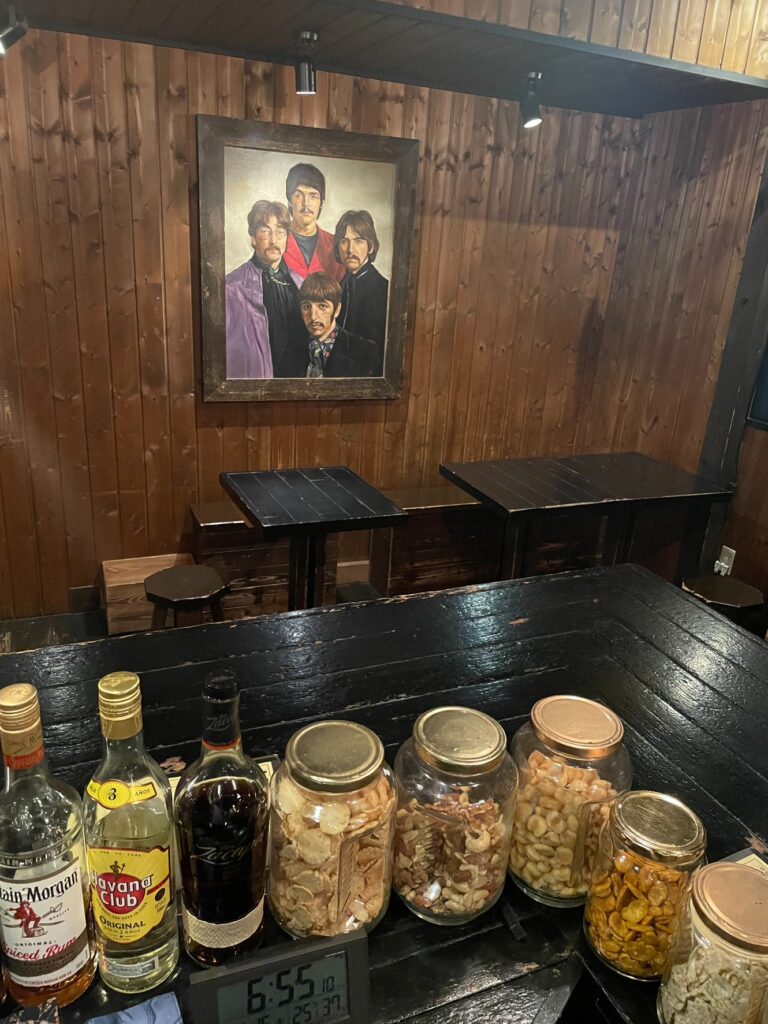 1970年代の洋楽ロックやポップスが流れる店内。
