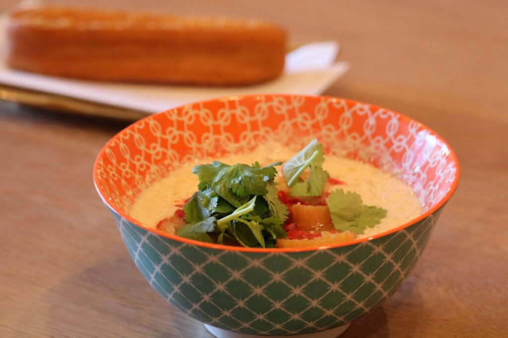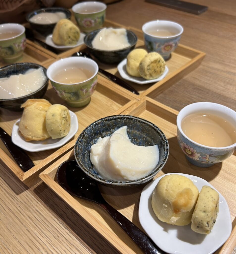 「シェンドウジャン(鹹豆漿)」は台湾の朝定番メニューで、温かい豆乳にお酢やラー油を加えたやさしい味わい。軽食としても満足感があり、モーニングにぴったりです。