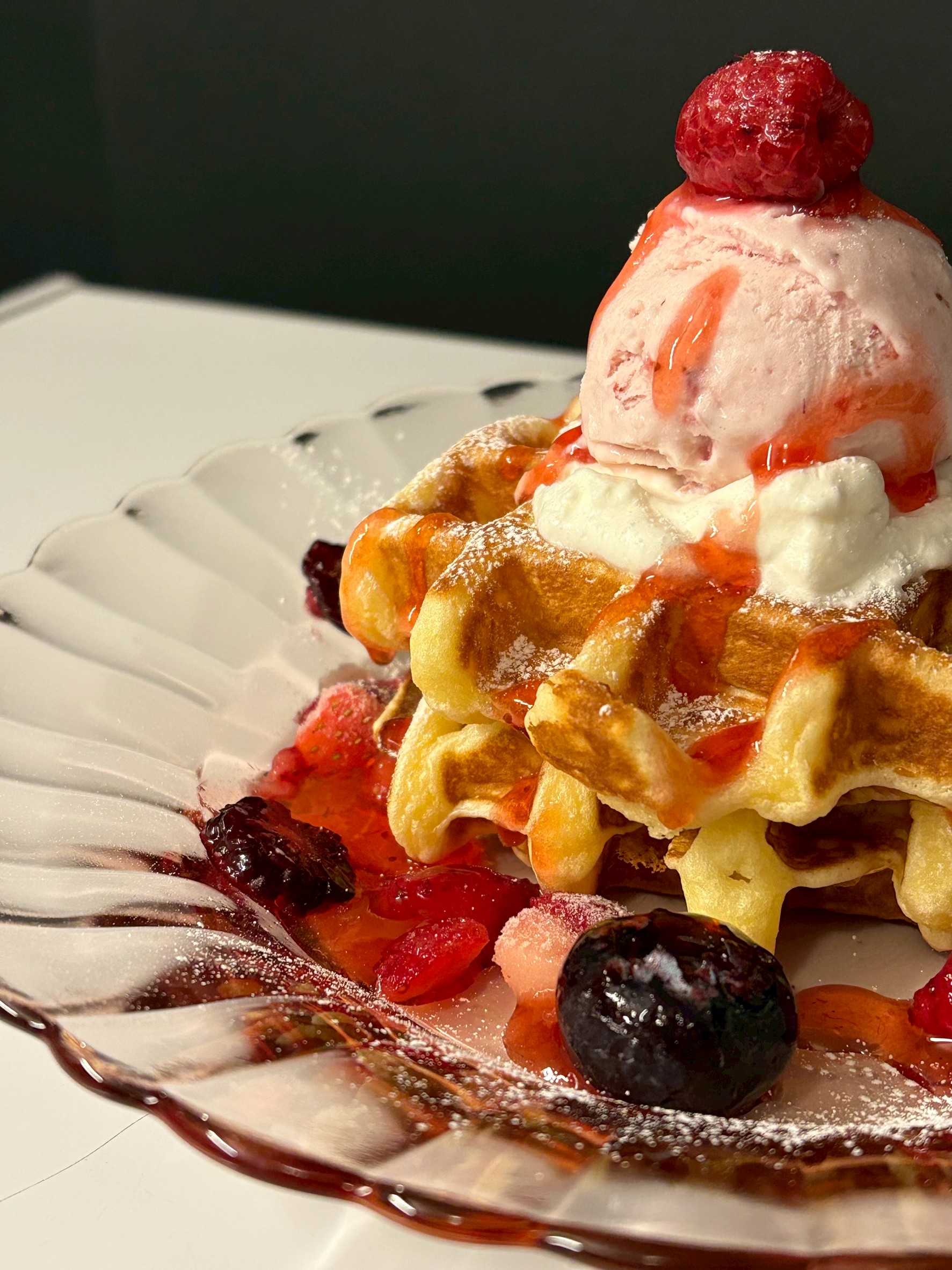 香ばしいワッフルに、酒粕ホイップを添えたスイーツが特徴です。