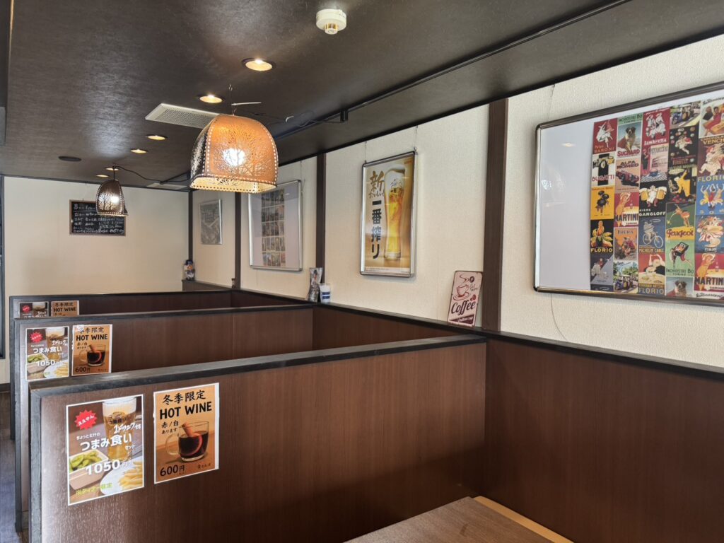 落ち着きのある家庭的な空間で、ご年配のお客さまからママ友の集まりまで幅広く利用できる雰囲気。程よい距離感の席配置で、ゆったりと食事を楽しめる空間づくりがされています。