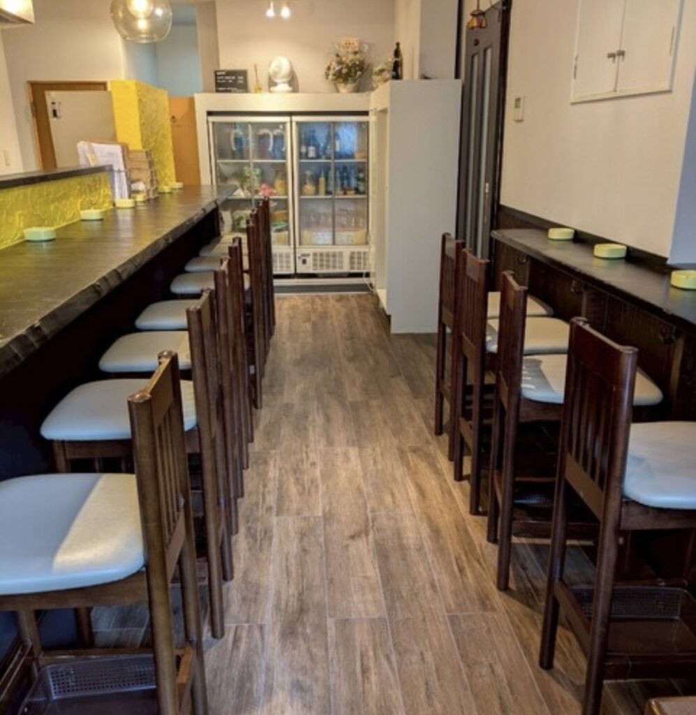 桐ヶ谷ビルの2階にあり、カジュアルで入りやすい雰囲気が魅力です。喫煙も可能なため、仕事終わりの一杯を楽しむ人から2軒目利用まで、幅広いシーンで使いやすい空間になっています。