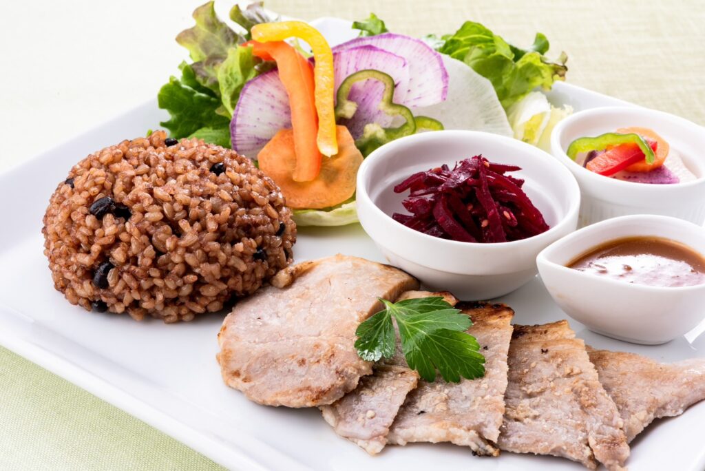 ご飯は発芽発酵玄米を採用しており、栄養価が高く、もちもちとした食感で満足感も十分。肉料理には「湘南みやじ豚」「匠の大山鶏」を使い、質のよさが料理全体の深みを支えている。