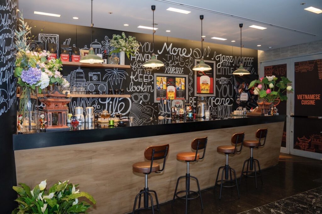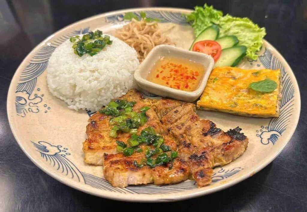 ブンチャー・揚げ春巻き・サンドイッチ・コーヒーが付いた満足セットや、レモングラスとスクマムで味付けした豚焼肉をご飯にのせ、ヌクチャムとネギ油で仕上げたコムスン🐖など、食べ応えのあるメニューをリーズナブルにご提供。