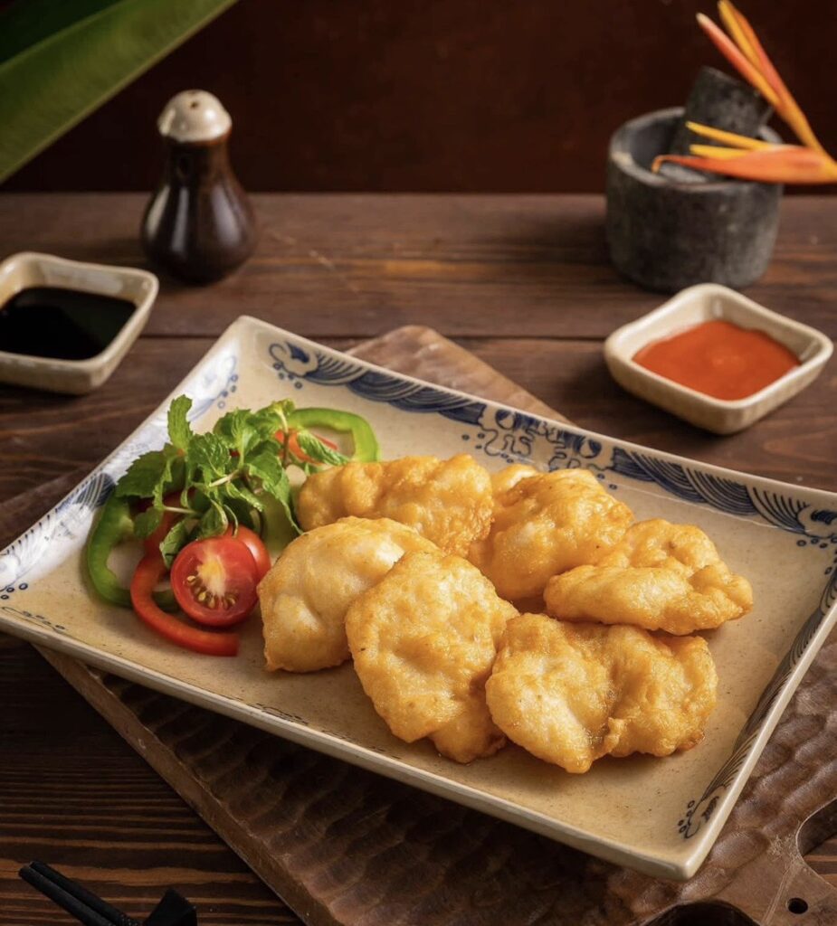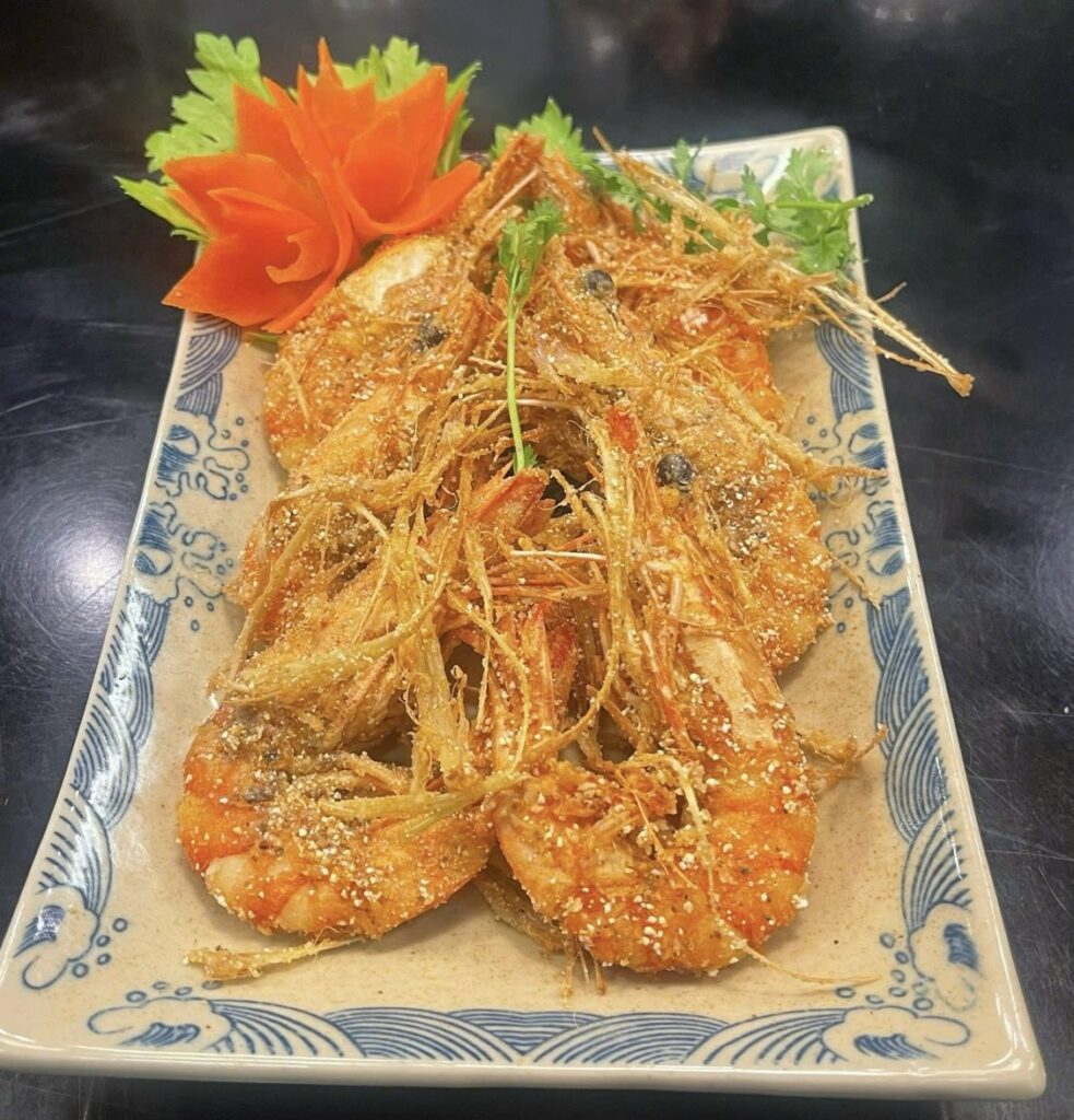 エビ・イカ・木耳をライスペーパーで巻いてカリッと揚げた“海鮮揚げ春巻き🦐”は、リピート率の高い人気メニューです。